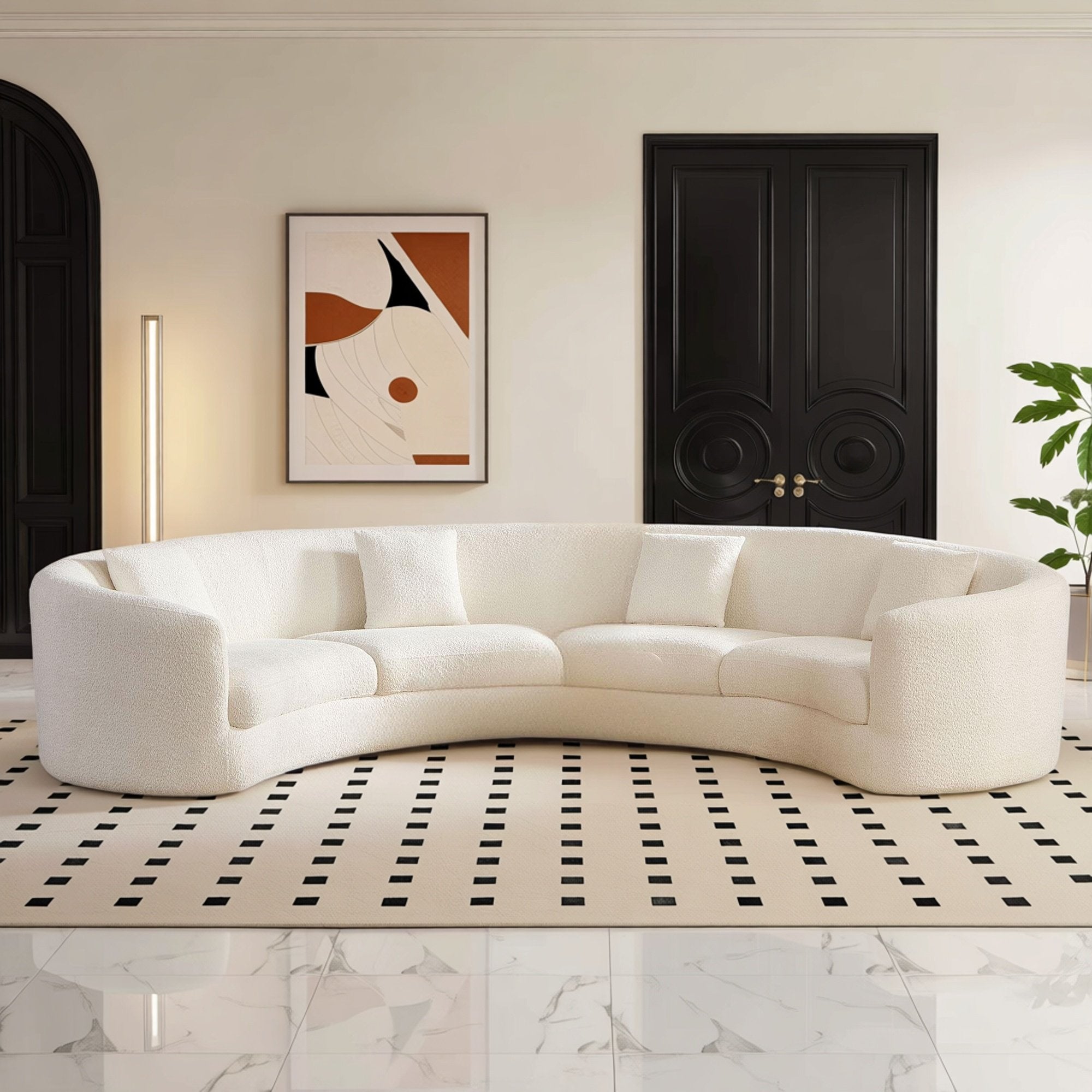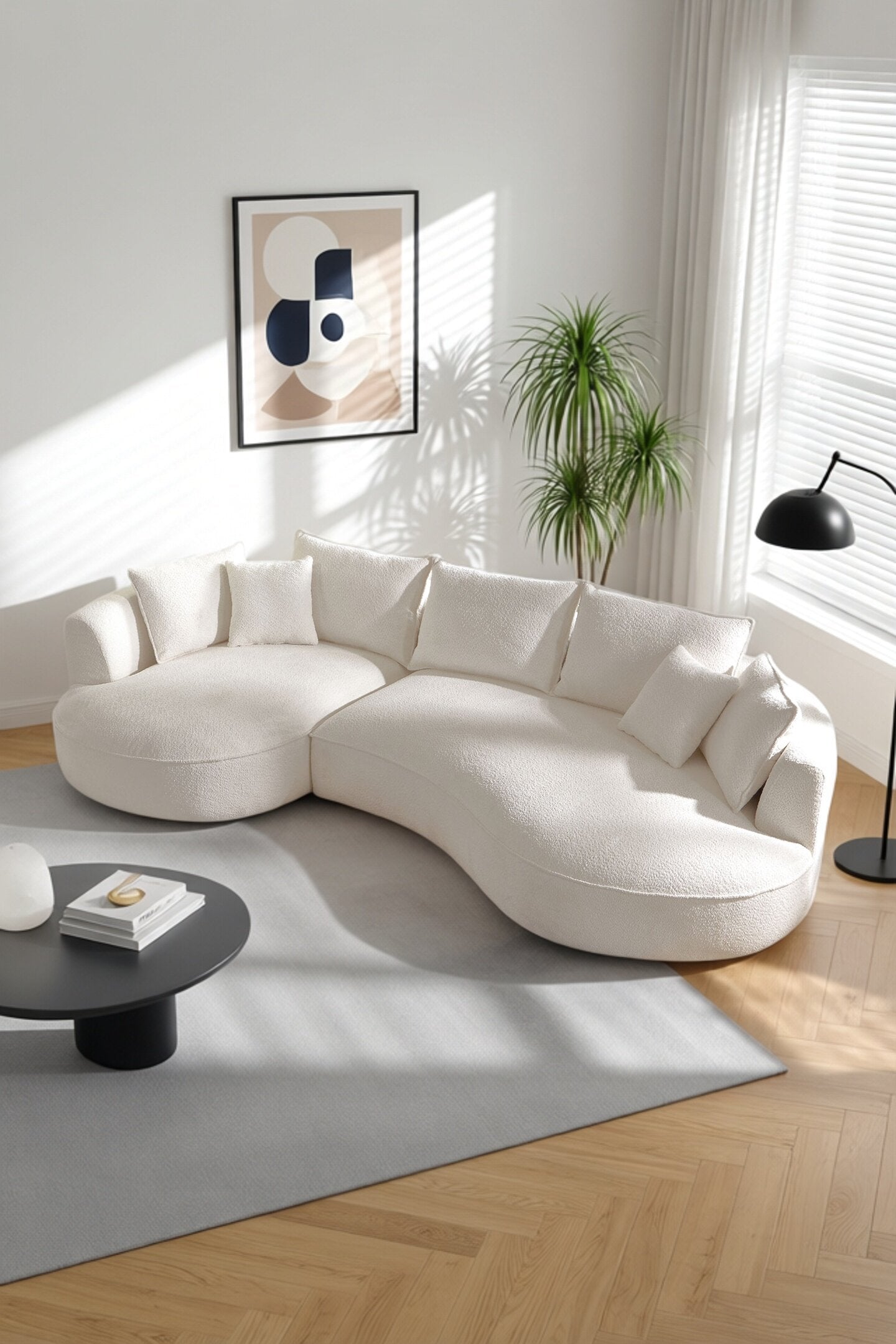 curved sofa U-shape couch with symmetric chaise white boucle fabric